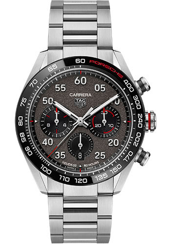 44 mm fine-brushed and polished case, ceramic bezel, grey dial, Calibre HEUER02 automatic chronograph movement with hours, minutes, seconds, date, approximately 80 hours of power reserve, fine brushed and polished steel bracelet, folding push-button buckle. Water resistant to 100 m.