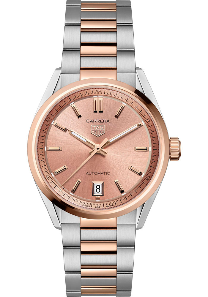 36 mm steel and gold fine-brushed and polished case, sapphire back, 18k 5n solid rose gold crown, white diamond dial, Calibre 7 automatic movement with hours, minutes, seconds, date, approximately 56 hours of power reserve, fine brushed and polished steel and gold bracelet, folding push-button buckle. Water resistant to 50 m.