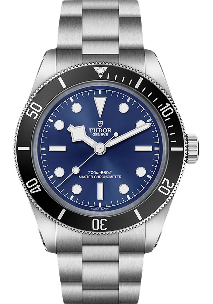 43 mm satin stainless steel case, stainless steel screw-down crown with the tudor rose in relief, 60-minute unidirectional bezel in stainless steel with matte black aluminium insert, domed sapphire crystal, domed sun-brushed dial with t, u, d, o, r, blue, applied hour markers, calibre MT5601-U (COSC and METAS certified) self-winding movement, approximately 70-hour of power reserve, 3-link stainless steel bracelet. Water resistant to 200m (660 ft).