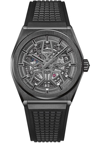 41 mm carbon case with diamonds, black openworked dial, Elite movement with hours and minutes in the centredate indication at 6 o'clock, central seconds hand, approximately 50 hours of power reserve, metal bracelet. Water resistant to 10 ATM.